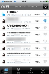 イー・フュージョンが、iPhone/iPod touch用Wi-Fi検出アプリ「eWiFi」を、App Storeにて無料配付を開始していたので試してみました。