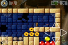 倉庫番ゲームの要素にアクションパズルを加えたゲームアプリで、プレイヤーを操作して、石などを動かして、最終的にクリスタルを獲得します。