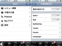 さらに、Safariで開いたり、MyWebClip、Twitter、Pocket、Instaperなどと連携する機能も搭載されています。