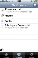 デスクトップ用DropboxのiPhoneアプリ版で、Dropboxアカウントを入力すると、Dropboxフォルダが表示され、PDFファイルやテキストなどを閲覧することが可能です。