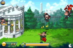 救済金を十分に与えられたにも関わらず、ホワイトハウスにお金を奪取しに押し寄せる銀行員を倒すゲームアプリです。