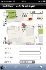 このLayar Reality Browserは、見るだけでなく、みんなのLayarを選択し、無料会員登録後に、Googleマップ上に、自分の情報などを残すことも出来るようになっています。