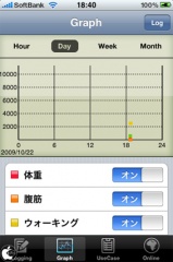 Graphをタップすると、記録した内容をグラフで確認することが出来ます。
