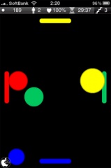 また、違う色のバーに触れると丸が小さくなり、獲得出来る得点が減ります。