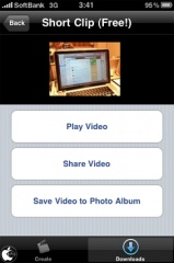 まず、Short Clipを選択し、iPhone 3GSのカメラで動画を撮影するか、写真ライブラリーから動画を選択します。