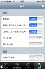 設定で、駐車場、駅やコンビニに近い、ペットOK、風呂といった検索条件を加えることが出来ます。