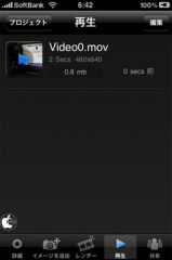 作成した動画は、再生タブをタップするとリスト表示され、作成された動画を再生して見ることが出来ます。