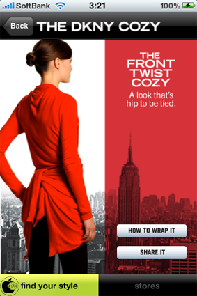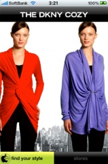 Donna Karan Internationalが、iPhone/iPod touch用カーディガン紹介アプリ「DKNY Cozy」を、App Storeにて無料配付を開始していたので試してみました。