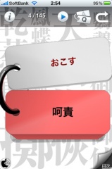 カードを指で上にフリックすると難読漢字の答えが表示され、同時に次の出題が表示されます。