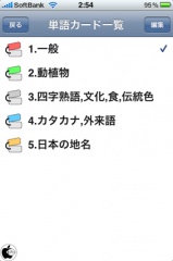 画面右下の目次をタップすると、単語カードのジャンルが一覧表示され、ここでジャンルを切換えることが出来るようになっています。