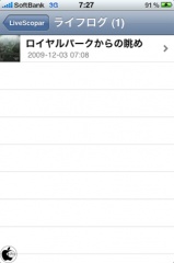 メニューの真ん中にあるLiveBoxタブをタップして、ライフログを選択すると、今まで自分が投稿してきたライブを確認することが出来るようになっています。