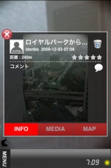 現在地情報を元に、iPhoneのカメラ画面上に、その場所に関する他のユーザーや友達が登録したおすすめ情報や感想などを表示するAR(拡張現実)アプリです。