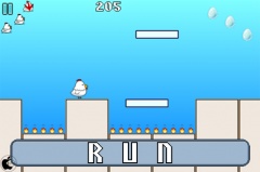 ゲームの内容は非常に単純で、画面上のRUNと書かれたボタンをタップし続けて、ニワトリを走らせるだけです。