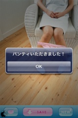 中央のSAVEボタンをタップすると「パンティいただきました!」のダイアログが表示され、写真ライブラリーに作成した写真が保存されます。
