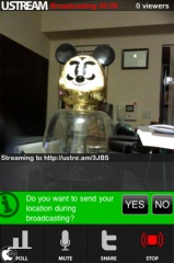 なお、このアプリを使用する場合、iPhone 3GSの性能をフルに使用するため、バッテリーの消費が速いことが分かっているので、長時間ライブストリーミングを行なう場合は、予備バッテリーを用意した方が良いと思います。