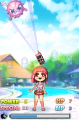 本体を傾けて、女の子の頭上にある携帯でから発するレーダーでモンスターを一時停止させ、指で直接タップして倒すゲームアプリです。