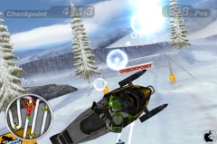 スノーモービル・レーシングゲームアプリで、シングルプレイ/マルチユーザープレイに対応し、トリックを決めるとポイントが加算されるアクションも加味されています。