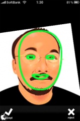 最初に、iPhoneのカメラで撮影するか、写真ライブラリーから顔写真を選択します。