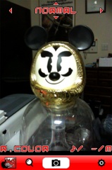 標準で搭載されているのは「赤メランダー」で、画面上のNOMALを縦に指でフリックするとシャッターが切れ、オリジナルと3種類のエフェクト処理されたプレビュー写真が表示されます。