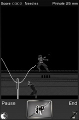 iPhone版では、背景に侍・忍者・城などのイラストを配置し、糸を針穴に通すと「鬼」「風」「龍」といった漢字が習字体で表示されるなど「和」をイメージしたグラフィックが多様されています。