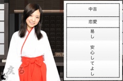 おみくじは、巫女さんの右に表示されている、おみくじをタップします。