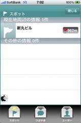 右上のコンパスアイコン(iPhone 3GSのみ)をタップすると画面半分にGoogleマップが表示され、本体の向きを変えることで、絞り込み範囲の方向を指定することが出来るようになっています。