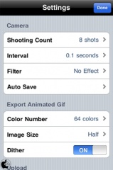連写した写真をGIFアニメに変換できるカメラアプリです。
