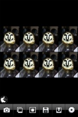 最初にカメラアイコンをタップし、iPhoneのカメラで撮影します。シャッターボタンを押すと、デフォルトでは連続8枚の写真が撮れます。