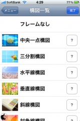 右下の構図ボタンをタップして、被写体に対して、ベストと思う写真構図を選択します。