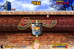 その軌跡を見ながらタイミングを合わせて画面をタッチすると、空き缶が飛びます。