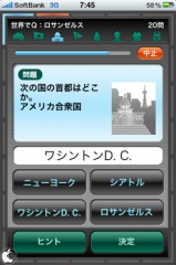 ジャイロが、iPhone/iPod touch用世界雑学クイズゲームアプリ「世界でQ」を、App Storeにて販売を開始していたので試してみました。