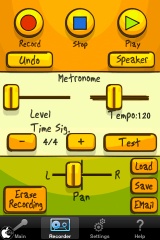 Recorderタブでは、Mainタブで設定した楽器の演奏を録音することが出来るようになっています。