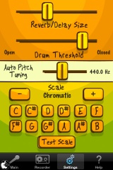 Settingsタブでは、リバーブ/ディレイ量、オートピッチチューニング、スケールなどを設定することが出来るようになっています。