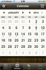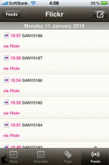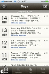 Twitter、Flickr、Facebook、Last.fmに投稿した内容を、投稿日付に基づいてカレンダー上に表示してくれるアプリです。