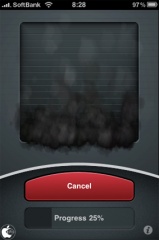 次にStabilizeをタップすると、シャッターが下りて、煙が出だし、手ブレ補正処理が開始されます。