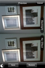 エフェクトボタンを選択した場合、撮影後のプレビュー画像の下に表示されるCompareボタンをタップすると、ノーマル写真とエフェクト処理された写真の2枚が表示され、結果を見比べることが出来るようになっています。