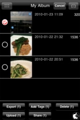 このMy Albumは、Editボタンをタップすると、それぞれの写真に対して書き出しやタグ打ちすることが出来ます。