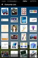 マイミクや参加コミュニティは、それぞれのアイコンがタイル表示され、そのアイコンをタップすると、それぞれの情報にアクセスすることが出来ます。