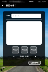 日記は、3枚の写真と公開レベル設定を行う事が出来るようになっています。