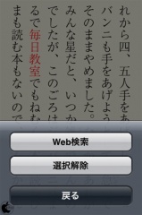 本文の単語などを指でなぞって指定すると赤くなり、その赤くなった部分をタップすると、SafariでGoogle検索することが出来ます。