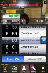 画面をタップすると画面下にメニューが表示され、本人の声を収録したアラームを設定することが出来ます。