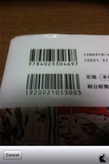 iPhone 3GSのカメラで、商品のバーコードを表示します。