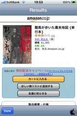 認識が完了すると、その商品情報が表示され、カートに追加したり、ほしい物リストに追加したり出来ます。