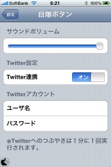 iPhone OSの設定>自爆ボタンで、Twitterアカウントを設定すると、自爆ボタンをタップすると同時に「XXXはXXXX年XX月XX日XX時XX分に自爆しました。」というツイートが投稿されます。