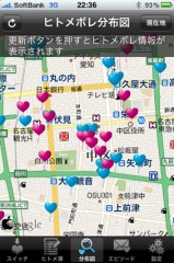 分布図をタップすると、現在地を中心としたヒトメボレ投稿分布を確認することが出来ます。