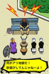 ゲームを始めると態度がでかいサンレッドが表示され、画面をタップすると、サンレッドの体に叩く場所を示した光の輪が順番に表示されます。
