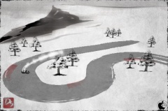 墨絵で書かれた道の上を指でなぞり、その軌跡に沿って車がドリフト走行するゲームアプリです。