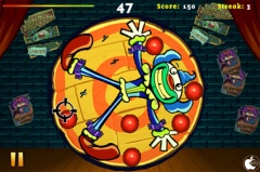 ナイフを投げて、回転板に張り付けにされたピエロの回りに配置された風船を全て割るゲームアプリです。