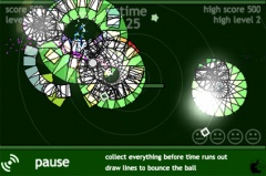 アクションパズルの要素とブロック崩しゲームの要素が合わさった感じのゲームで、プレイヤーは、画面内を跳ね回る弾に対して、画面を指でなぞってバーを表示させ、それによって弾む方向を変えながらクリアを目指します。