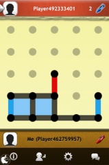 ゲームは、グレーの点と点を繋ぎ、最終的に四角を成立させた方が、その四角のエリアを獲得することが出来ます。